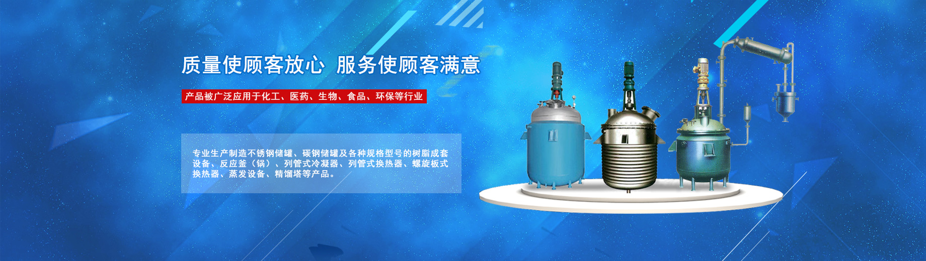 公司專業(yè)生產(chǎn)制造不銹鋼儲罐、碳鋼儲罐及各種規(guī)格型號的樹脂成套設(shè)備、反應(yīng)釜(鍋)、列管式冷凝器、列管式換熱器、螺旋板式換熱器、蒸發(fā)設(shè)備、精餾塔等產(chǎn)品,被廣泛應(yīng)用于化工、醫(yī)藥、生物、食品、環(huán)保等行業(yè)。